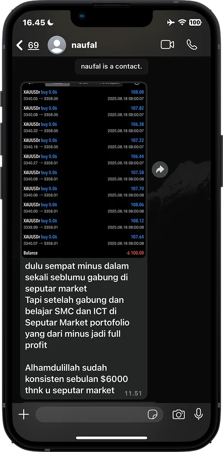 Mengajarkan strategi Smart Money Concepts (SMC), Support & Resistance (SNR), dan Inner Circle Trading (ICT)